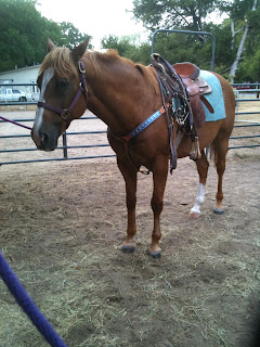 Pretty soon, we were moving forward in large circles, then making the circles smaller in both directions without using my hands at all. Paying close attention to my seat, sitting loosely in the saddle with my legs hanging straight down. Never changing the way I sat or moving my legs until I asked her to do a specific maneuver. It's going to take practice at the walk, before I can step it up to a trot. I realized while working with her, her stop has a lag. I have to pick up the reins for her to come completely to a halt. When she does come to a complete stop, I squeeze my legs, pull back on the reins and she backs up great. I'm going to have to concentrate on a better stop, before I can move on.